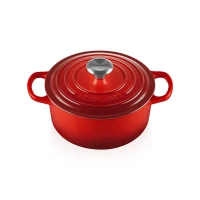 The iconic Le Creuset Cerise Signature Cast Iron 20cm Round Casserole is perfectly designed for stews, casseroles, roasts, soups and baking. Make mouth-watering and memorable meals that are full of intense flavour in this one-stop pot.Advanced sand interior enamel - durable, easy to clean and specifically engineered to resist staining with a higher resistance to wear and tear. Significantly improves durability and performance, being 35-40% more resistant to thermal shock and 16% more resistant mechanical shock (chipping from utensils). It is also more resistant to acid attack and 24% more resistant to enamel erosion. There is less absorption of food colours and it is more durable against repeated dishwasher use as well as being 45% easier to clean.Large handles are easier to grip and lift when full, even when wearing oven gloves or mitts.Stylish and durable brushed stainless steel finish. Easy, comfortable and natural grip, suitable for all temperatures.Tight fitting lid with built in stabilisers for enhanced moisture lock in and flavour, during cooking.Handcrafted at the Le Creuset foundry in northern France since 1925, Le Creuset casseroles are made from premium quality cast iron ensuring each product is beautifully finished and long lasting. Le Creuset cast iron cookware also works efficiently at low to medium cooking temperatures and retains heat effectively, ensuring food stays warm for longer.Le Creuset cast iron casseroles are suitable for all hob types (including ceramic, halogen, induction, gas and oil or wood) and are also oven and grill safe.Dishwasher safe, although hand washing is recommended.