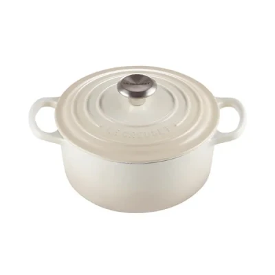 The iconic Le Creuset Signature Meringue Cast Iron 24cm Round Casserole is perfectly designed for stews, casseroles, roasts, soups and baking. Make mouth-watering and memorable meals that are full of intense flavour in this one-stop pot.ADVANCED SAND INTERIOR ENAMEL - durable, easy to clean and specifically engineered to resist staining with a higher resistance to wear and tear. Significantly improves durability and performance, being 35-40% more resistant to thermal shock and 16% more resistant mechanical shock (chipping from utensils). It is also more resistant to acid attack and 24% more resistant to enamel erosion. There is less absorption of food colours and it is more durable against repeated dishwasher use as well as being 45% easier to clean.LARGE HANDLES - easier to grip and lift when full, even when wearing oven gloves or mitts.ERGONOMIC STAINLESS STEEL KNOB - stylish and durable brushed stainless steel finish. Easy, comfortable and natural grip, suitable for all temperatures.ENGINEERED LID - tight fitting with built in stabilisers for enhanced moisture lock in and flavour, during cooking.Handcrafted at the Le Creuset foundry in northern France since 1925, Le Creuset casseroles are made from premium quality cast iron ensuring each product is beautifully finished and long lasting. A true kitchen essential, the cast iron round casserole is not only perfect for making casseroles, stews and one pot roasts, but is versatile enough for baking cakes and bread. Le Creuset cast iron cookware also works efficiently at low to medium cooking temperatures and retains heat effectively, ensuring food stays warm for longer.Le Creuset cast iron casseroles are suitable for all hob types (including ceramic, halogen, induction, gas and oil or wood) and are also oven and grill safe.Dishwasher safe, although hand washing is recommended.The Le Creuset 24cm round cast iron casserole is ideal for 4-5 people and has a capacity of 4.5L. Dimensions: L32.5cm x W25.2cm x H16 .6cm. Weight: 4.31kg.This Le Creuset Signature Meringue Cast Iron 24cm Round Casserole is supplied with a manufacturer's lifetime guarantee.