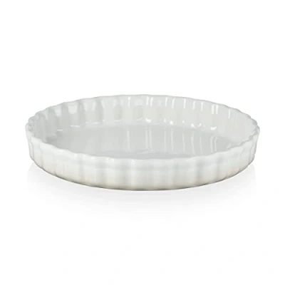 Stoneware fluted flan dish, Ideal for flans, tarts, pies or quiche, 28 cm diameter, Available in a range of colours Easy to use and clean: Freezer safe, Stain-resistant enamel, Easy to handwash, Dishwasher safe Strong stoneware, Durable chip-resistant enamel, Heats food evenly, Lasting heat retention, Withstands temperatures up to 260°C, 10-year warranty Stylish presentation from oven or fridge to table, Ideal gift item for individuals and couples Contents: 1 x Le Creuset Stoneware Fluted Flan Dish, 1x Care and Use Booklet, Material: Stoneware, Dimensions: 29.9 x 29.9 x 4.8 cm, Weight: 1.82 kg, Colour: Meringue, 71120287160001
