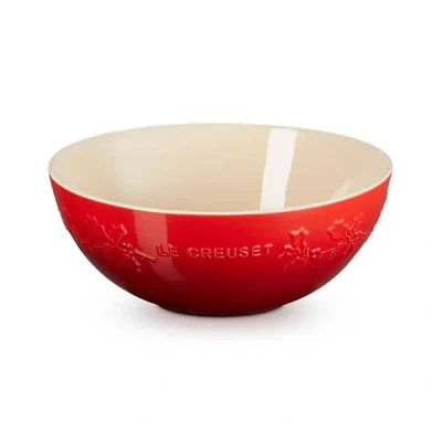 Bring festive cheer to your home with this Le Creuset Holly Cerise Stoneware 25cm Serving Bowl.The 25cm Stoneware Serving Bowl boasts a generous 3.6L capacity, making it perfect for entertaining family and friends. It’s ideal for serving salads, vegetables, side dishes, or main courses at the table.This versatile bowl is safe for use in the fridge, freezer, oven, microwave, and dishwasher, making it convenient for both everyday meals and special occasions throughout the year.All Le Creuset Stoneware is made from specialist clays and then fired at the highest temperatures to ensure each piece is of the highest quality. Covered by a Le Creuset 10 year guarantee.