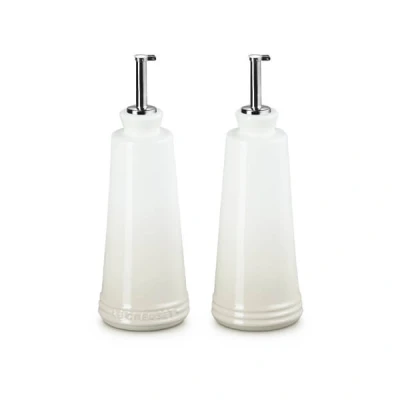 Decant your favourite vinegar and oil into this beautiful Le Creuset Meringue Oil & Vinegar Set to create an instant style statement. Crafted from premium Le Creuset stoneware, this oil & vinegar set is a feast for the eyes and teams perfectly with Le Creuset’s salt and pepper grinders. Easy-pour spouts make serving effortless.Le Creuset stoneware is made from specialist clays and fired at the highest temperatures, making it strong and durable with exceptional thermal resistance. Thanks to Le Creuset's enamelling expertise, all stoneware products are easy to clean and are scratch resistant.Dishwasher safe.Le Creuset Oil & Vinegar Set dimensions (per bottle): L8cm x W8cm x H23.1cm. Weight: 0.49kg. Capacity: 300ml.This Le Creuset Meringue Oil & Vinegar Set is supplied with a 10 year Le Creuset guarantee.