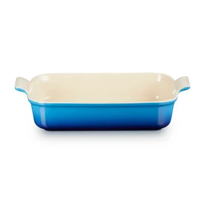 AmazonStoneware dish, Ideal for gratins, pies, and other side dishes, 32 cm, 4 litres, Available in a range of colours Easy to use and clean: Freezer safe, Stain-resistant enamel, Easy to handwash, Dishwasher safe Strong stoneware, Durable chip-resistant enamel, Heats food evenly, Lasting heat retention, Withstands temperatures up to 260°C, 10-year warranty Stylish presentation from oven or fridge to table, Ideal gift item for individuals and couples Contents: 1x Le Creuset Heritage Stoneware Rectangular Dish, 1x Care and Use Booklet, Material: Stoneware, Dimensions: 39 x 25.4 x 9.1 cm, Weight: 2.31 kg, Colour: Azure, 71102322200001