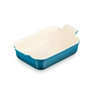 AmazonStoneware dish, Ideal for gratins, pies, and other side dishes, 26 cm, 2.4 litres, Available in a range of colours Easy to use and clean: Freezer safe, Stain-resistant enamel, Easy to handwash, Dishwasher safe Strong stoneware, Durable chip-resistant enamel, Heats food evenly, Lasting heat retention, Withstands temperatures up to 260°C, 10-year warranty Stylish presentation from oven or fridge to table, Ideal gift item for individuals and couples Contents: 1x Le Creuset Heritage Stoneware Rectangular Dish, 1x Care and Use Booklet, Material: Stoneware, Dimensions: 32.7 x 20.3 x 8.9 cm, Weight: 1.47 kg, Colour: Deep Teal, 71102266420001
