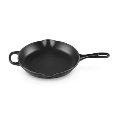 #html-body [data-pb-style=T34NYQS]{justify-content:flex-start;display:flex;flex-direction:column;background-position:left top;background-size:cover;background-repeat:no-repeat;background-attachment:scroll}Sear, brown and crisp using the Le Creuset Signature Satin Black Cast Iron 26cm Skillet. Le Creuset cast iron skillets have long been treasured kitchen staples for stovetop frying and oven baking. They are perfect for searing meat, poultry, and fish by creating a browned caramelised surface and sealing in moisture. Using the pan juices to make a sauce after cooking foods like steak will give depth of flavour. Extremely versatile, this frying pan with a metal handle, can withstand any cooking temperature, so can be used on the hob, on the barbecue or in the oven for a vast array of cooking tasks including making fish cakes and frittata or baking a dessert. Le Creuset Signature cast iron skillets are a flat based frying pan with shallow sloping sides featuring a convenient helper handle for easier lifting and added control when moving between hob (including induction), oven and table. There are also spouts on two sides allowing drip-free pouring. The skillet is coated with Le Creuset's specialist satin black enamel finish. Very durable and easy to clean, the Satin Black enamel interior has been specially designed to protect the pan (no seasoning is required) and for high surface heat use. Over time, it develops a natural patina that is ideal for searing, browning and frying. Handcrafted at the Le Creuset foundry in northern France, Le Creuset cast iron cookware works efficiently at low to medium cooking temperatures and has even heat distribution and superior heat retention for great cooking results. Long-lasting exterior enamel resists chipping and cracking. Dishwasher safe, although hand washing is recommended. Dimensions: L44.2cm x W26.9cm x H5.5cm. Weight: 2.75kg. This Le Creuset Signature Satin Black Cast Iron 26cm Skillet is supplied with a manufacturer's lifetime warranty.Le Creuset 201822600 26cm Skillet with Metal Handle - Satin Black