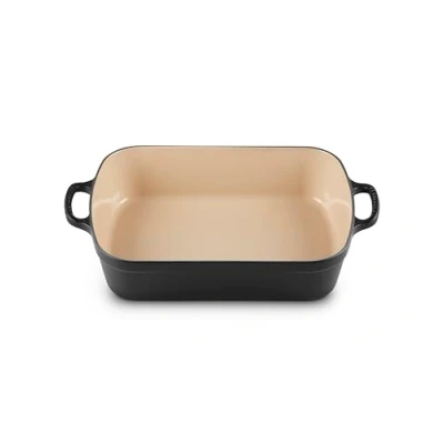 AmazonEnamelled cast iron rectangular roasting dish with easy-grip handles, Serves 4-6 people, Made in France Easy food release interior enamel, Ideal for quick simmering, slow roasting or baking on medium-low heat, Heats evenly with lasting heat retention Versatile use: From roasted meat and veg, to pasta bakes, brownies and more Easy to use and clean: Completely oven safe, Suitable for all hob types (incl. induction), ovens, and grills, Easy-grip handles for even weight, Easy-handwash enamel, Dishwasher safe Contents: 1x Le Creuset Signature Cast Iron Roasting Dish, 1x Care & Use Booklet, Dimensions: 40x26x7.6cm, Weight: 4.34kg, Capacity: 4.9L, Colour: Matte Black, 20184330002422