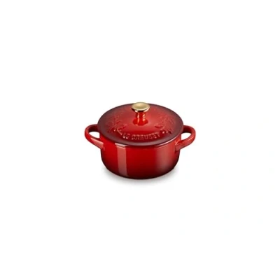 Le Creuset Stoneware Holly Collection Mini Round Cocotte, 8 Oz, Cerise with Gold Knob