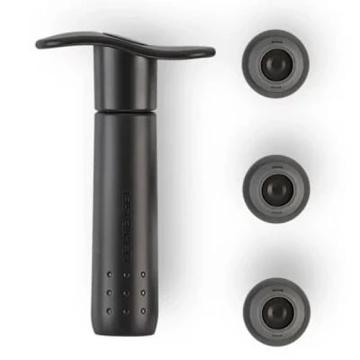 AmazonProperly preserves opened wine bottles to extend life, Metal pumping system removes air and creates a tight seal Efficient action and large capacity barrel extracts more air with fewer pumps for efficiency Comfortable, easy grip handle Three universal-sized stoppers included, 10-year guarantee Contents: 1x WA-137 Plastic Wine Pump with 3 stoppers, Material: Plastic, Dimensions: 14.3 x 9 x 3.3 cm, Weight: 0.1 kg, Colour: Matte Black, 49200000008200