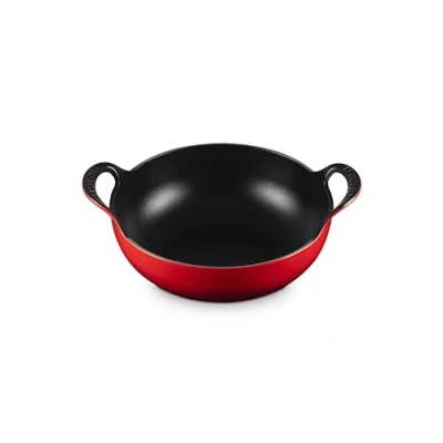 AmazonIconic Indian cooking vessel used both for cooking, serving, traditionally made in cast iron, Made in France Durable matte black interior enamel finish requires no seasoning, even heat distribution; superior heat retention Long-lasting exterior enamel resists chipping with cracking Easy to use and clean: Completely oven safe, Suitable for all hob types (incl. induction), ovens, grills, Easy-grip handles for even weight, Easy-handwash enamel, Dishwasher safe Contents: 1 x Le Creuset Balti Dish 24cm Cerise, Dimensions: L31 x W25 x H11 cm, Weight: 2.34kg, Colour: Cerise, 20142240600460