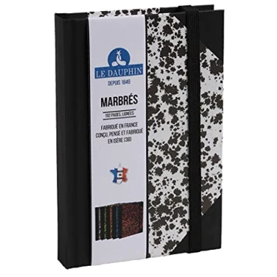 Le Dauphin Ref. 167201D 1 notebook lined interior print with black elastic closure band dimensions 17 x 11 cm vertical format 192 pages white marbled cover