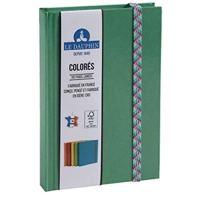 Le Dauphin Ref. 167213D 1 Iderama notebook lined interior print colored elastic closure dimensions 17 x 11 cm vertical format 192 pages green cover FSC® certified