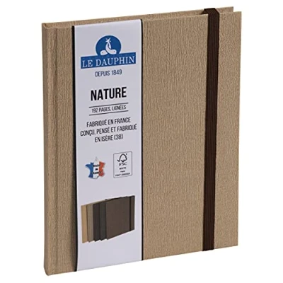 Le Dauphin Ref. 267222D 1 Nature notebook lined interior print brown elastic closure dimensions 22 x 17 cm vertical format 192 pages cover FSC® certified