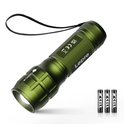 Amazon Small and Compact Design - LE flashlight size is about φ3.4cm*10.9cm, non-slip surface, easy to carry even for kids. Premium Quality LED - The small but super bright torch uses high-quality efficient LEDs, and the small LED flashlight provides 140 lumens of bright light, it could light up the road about 150m (500ft) distance. Adjustable Focus - The zoomable LED flashlight can emit a perfectly focused spotlight beam at a distance of 150M or turn it into a bright large area floodlight by rotating the flashlight head. Waterproof and Practical - IP44 means water splashing against the enclosure from any direction shall have no harmful effect. Ideal for camping, cycling, climbing, dog walking, and other outdoor activities. Perfect Gift - This high-quality, fully-accessorized torch battery powered (3 AAA batteries included) is perfect as a birthday gift, Children's Day gift, Thanksgiving gift, Father's Day gift, and Christmas gift. Perfect gift for kids, fathers, men, boys, and the elderly.