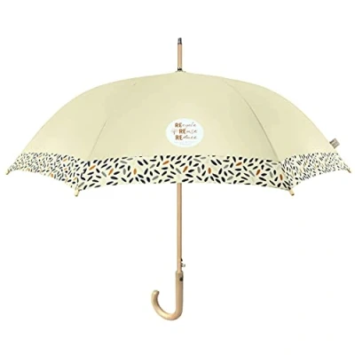 RECYCLED MATERIALS: All umbrellas in the Perletti Green collection are made with recycled or biodegradable materials, such as natural wood handle and button and RPET fabric, obtained from recycled plastic bottles. RESISTANCE: For the manufacture of whales and stick we used fiberglass, which gives the umbrella superior strength and flexibility. Your umbrella will withstand even the most adverse weather conditions. WASTE REDUCTION: Minimizing waste is one of our main goals and for this reason we use recycled and super resistant materials to reduce environmental impact. ECO-FRIENDLY: The ecological word for Perletti means a set of natural patterns and details. For your perfect gift choose nature! AUTOMATIC CANE PARAPLUY: Classic Umbrella for Women with automatic opening. An automatic mechanism allows you to keep it in one hand and a sturdy fibreglass frame will make the umbrella light and convenient at the same time. One of the strengths of an automatic mechanism is that you can open the umbrella with one hand. Its diameter measures 102 cm.