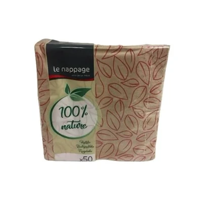 Unbleached disposable paper napkins are made of pure cellulose wadding derived from responsibly managed forests that has not undergone any bleaching treatment and without the use of bleaching agents. Pleasant to the touch and durable to use, these small napkins are perfect for cocktails, aperitifs or brunch. Pack of 50 napkins ecru size 33x33 cm. A delicate leaf-shaped decor printed with water-based inks 100% Nature: These napkins are produced in the FSC process and have the certification (Licence C138485). This brand allows him to propose some of his FSC certified products and ensures that the essential wood used in the manufacture of our products comes from sustainably managed forests. It guarantees the protection of biodiversity and also the respect of workers. Finally, it ensures that the forest is economically sustainable. Wide range: ecru cotton napkins are part of a wide range of products, cutlery, napkins and dishes that are particularly responsible for their way of manufacture and composition. This disposable range is aimed especially at those who want to make an environmentally friendly and sustainable choice., Manufacturer: Le Nappage