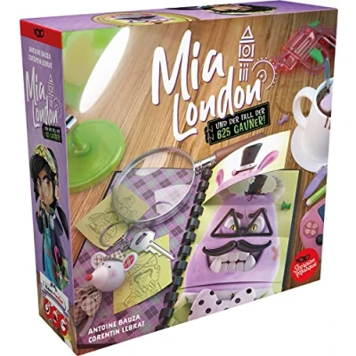 In the competitive memory game, the famous detective Mia London needs your help in a difficult case. Help her find the villain among 625 suspects and reconstruct his portrait Forms 4 stacks according to their different features hat, glasses, moustache and bow tie. Shuffles the cards and conceals a random card from each stack. This is your sought-after villain The investigation ladder covers the cards of the stacks. Each feature is present twice. Each feature is only included once in the stack. This is your feature that you need to find Enter the features in your investigation booklet. After you have gone through all the stacks, you compare your results. The player who finds the most right features wins the game 2-4 players, from 5+ years, up to 10+ minutes of playing time per game, game in German, Manufacturer: Le Scorpion Masqué