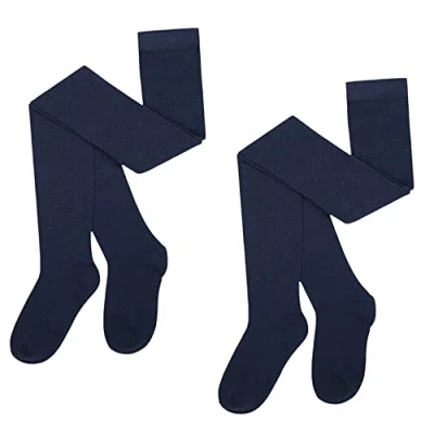 Le11 Girls 3 Pairs Multibuy Cotton Rich Plain Tights (as8, age, 5_years, 6_years, regular, Navy)