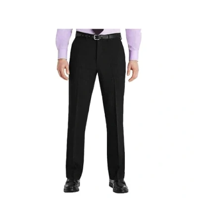 Le11 Mens Formal Trousers Casual Business Office Work Smart Straight Leg Everpress Pants (Without Belt) (44W/29L, Black)
