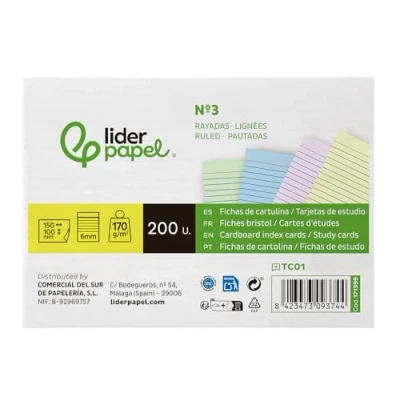 Leaderpapel Card for Studying Ruled Coloured cardstock 170 g/m2 125x200 mm Pack of 200 Units.