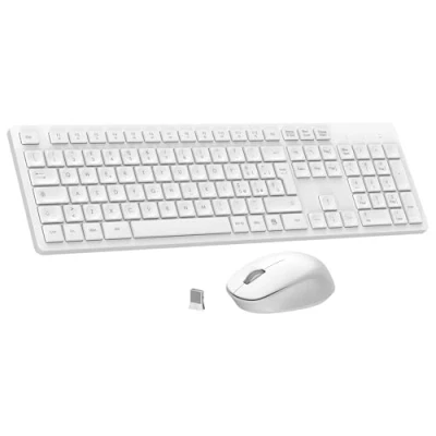 LeadsaiL Wireless Keyboard and Mouse, Mouse Kit for Computer USB 2.4 GHz, QWERTY, Full Size, Quiet, Ergonomic, Numeric Keypad, Quick Choice Keys HP/Mac White