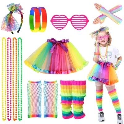 LEADSTAR Dress Up for Girls, Retro Costume Outfits Accessories Set Girls Age 3 to 12,11Pcs Kids Fancy Includes Tutu Skirt & Toddlers Birthday/Cosplay/Hallween Party