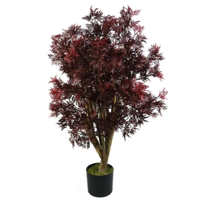 Amazon MarketplaceDark red Aralia tree with UV protection This tree is designed to go outside As we have it arranged in our photos this measures 120cm high x 70cm x 70cm. Branches are wired and this can be shaped to fit your space. Plastic weighted pot measures: 15cm (d) x 12cm (h) approx. Potted in a plain plastic pot and is ready to display. You can make these trees look all the more impressive by popping inside a larger planter and covering with soil- bark or gravel to add to the realistic effect Botanik product.