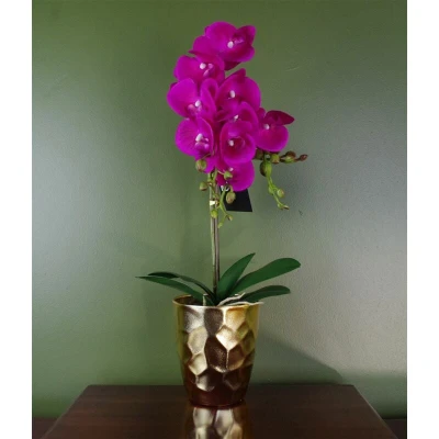 Leaf 54cm Artificial Orchid Plant Dark Pink Gold Pot