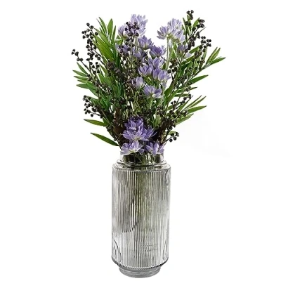 Leaf 60cm Artificial Purple Starflower Display Glass Vase