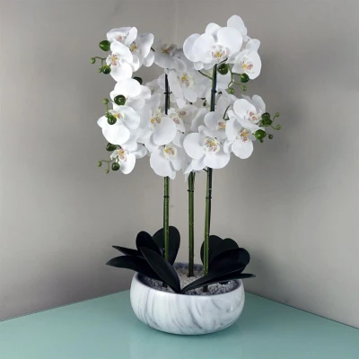 General description This 60cm Orchid with Ceramic Planter from Botanik is renowned for its lifelike appearance and elegant presentation. The orchid features realistic PVC flowers and is beautifully displayed in a luxurious white marble effect ceramic planter, making it a perfect addition to your indoor decor. Technical specifications Orchid dimensions: 60cm x 40cm x 40cm Planter dimensions: 26cm (d) x 10cm (h) Usage This product is designed for indoor use only, allowing you to elevate your decor with sophistication straight out of the box.