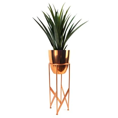 ManoManoGeneral description This 90cm Copper Planter with Artificial Yukka Plant is a stylish addition to any indoor space. The planter and plant can be used together or separately, offering versatility in your decor. Technical specifications Overall height: 90cm Planter dimensions: 19cm wide x 55cm high Plant height: 60cm Plant base dimensions: 14cm x 12cm Top planter dimensions: 18cm wide x 19cm tall Other information Materials: Metal planter and stand, artificial plant with thick plastic leaves Handmade with a rustic finish featuring intentional minor imperfections Available in a choice of colors Intended for indoor use