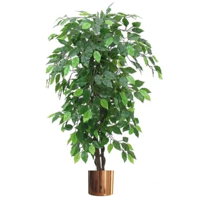 Artificial Ficus trees are extremely popular choices for indoor arrangements. Our ficus trees have extremely realistic shapes and multiple leaf colours Together with a natural trunk and multiple wired stems This artificial tree is suitable for both residential and commercial applications. This artificial tree stands 120cm (4ft) high It is highly realistic with botanically accurate foliage. Stems are wired and can be shaped to your requirements You can easily put this inside a larger planter if you wish Comes with a separate metal planter to display.