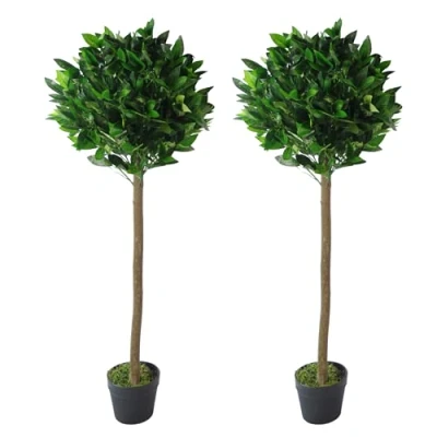 Leaf Design UK Pair of Artificial Bay Topiary Ball Trees, Green, 120cm (4ft)