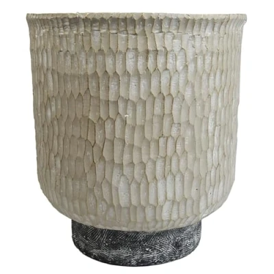 Overall size is 32 x 29 x 29cm Large fibreglass composite planters, hand finished in a rustic style. Available in a range of designs and sizes. Large planter ideal for either artificial plants or real ones. Designed for indoor use but can be used outdoors in a sheltered position, we recommend protecting from extremes of weather. Leaf Design UK product.