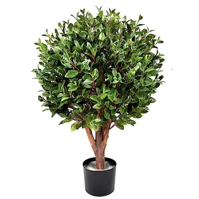 UV Protected artificial topiary, suitable for outdoor use This tree is a realistic imitation of a gloxina topiary tree which stands 90cm high x 50cm wide when arranged as shown in our pictures It comes potted in a weighted black plastic pot We recommend putting this inside a larger planter for a more impressive effect Plastic pot measures 17cm (w) x 15cm (h) approx