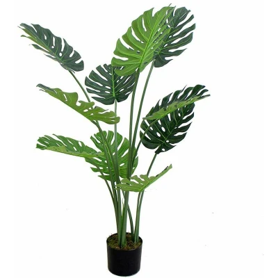 General description These 120cm realistic artificial Monstera Cheese plants are designed to enhance your indoor space with their highly realistic and botanically accurate foliage. They come potted in black plastic pots and can be displayed as is or placed inside larger planters for a more impressive look. The stems are wired, allowing you to shape them according to your preferences. Usage Ideal for indoor decoration. Can be arranged in larger planters for added visual appeal. Stems can be shaped to fit your desired arrangement.
