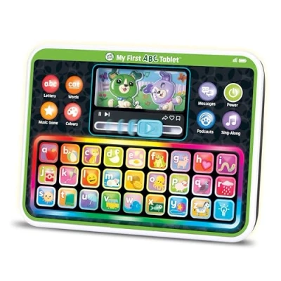 JoybuyThe LeapFrog My First ABC Tablet is an interactive learning toy for children aged 12 months and up, featuring 26 letter keys, four learning modes, fun audio with Scout and Violet, and a colorful backlit keyboard to teach letters, numbers, colors, and animals in an engaging way.