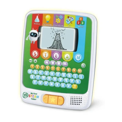 Get ready to go full steam ahead with this Leapfrog My First STEAM Tablet. Little explorers can learn simple science words, grow a seed and build robots and machines by matching shapes. With fun activities and friendly characters like Dr. Frankensteam and SteamBot, learning about Science, Technology, Engineering, Art and Maths has never been more exciting. Perfect for curious minds.Good to know - Fun characters and colourful animations keep kids engaged and excited to learn - The chunky buttons and easy controls are great for tiny hands to explore on their own - It's powered by 3 x AA batteries - no more searching high and low for the chargerPlease note: This toy produces flashes that may trigger epilepsy in sensitised individuals.