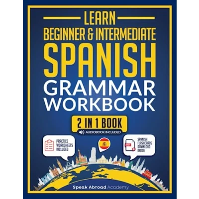 Learn Beginner & Intermediate Spanish: Grammar Workbook for Adults: 2 in 1 Book: Essential Lessons and Simple Exercises. Includes Practice Worksheets + Audio Pronunciation