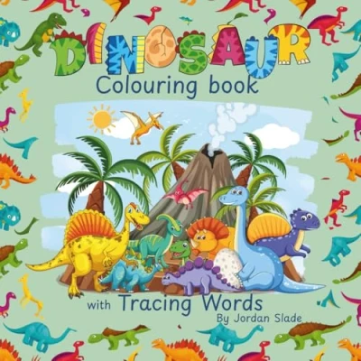 Learn & Colour Dinosaurs: Fun Dinosaur Colouring Book with Tracing Words for Kids Ages 3 6 Handwriting Practice + Prehistoric Learning Adventure!