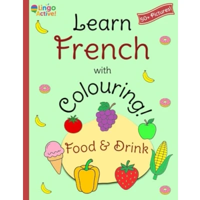 Learn French with Colouring: A fun bilingual food and drink colouring book for toddlers preschoolers children Over 50 easy pictures to colour ... translations pronunciation guide