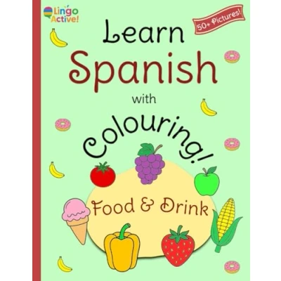 Learn Spanish with Colouring: A fun bilingual food and drink colouring book for toddlers preschoolers children Over 50 easy pictures to colour ... translations pronunciation guide