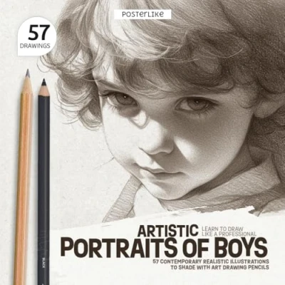 Learn to Draw Like a Professional. Artistic Portraits of Boys: 57 Contemporary Realistic Illustrations Shade with Art Drawing Pencils