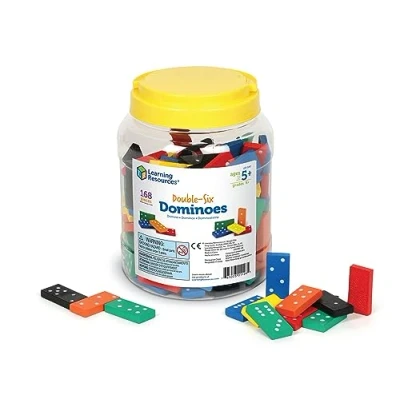 Learning Resources Double Six Wooden Dominoes, Schwarz, Blau, Grün, Orange