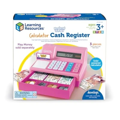 CASH REGISTER TOY FOR KIDS: Develop early maths skills through imaginative play with this classic pink till toy with solar-powered calculator. Play Money Sold Separately EASY TO USE: Large, colourful buttons and a clear display help young children learn to add, subtract, and more with confidence. ENCOURAGES LEARNING: Supports money awareness, counting, and early numeracy in fun pretend shop play at home or school. DURABLE DESIGN: Sturdy plastic build is made to last through endless shopping role play adventures with friends or siblings INCLUDES: Cash register with working cash drawer, “cha-ching” sound, notepad, and pretend credit card; uses solar power. LEARNING IS WHERE WE PLAY: Learning Resources has over 40 years’ experience in making quality educational toys that help children learn through play. Our company is also the home of hand2mind and Educational Insights toys and teaching resources, Manufacturer: Learning Resources