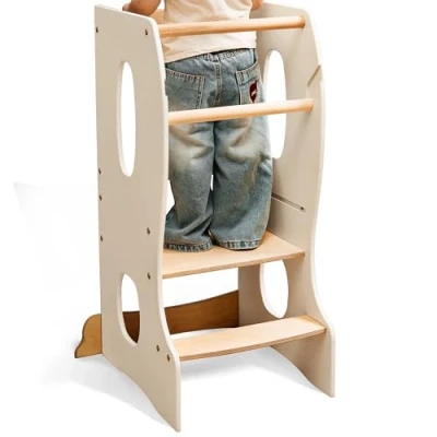 Adjustable Height for Every Growth Stage: This learning tower adjusts easily to match your child's height, making it the perfect companion for toddlers and preschoolers as they grow. Inspires Independence & Family Bonding: Encourage your child to safely join you in the kitchen, developing life skills and creating cherished family moments with this Montessori Learning Step Stool. Multi-Purpose for Cooking, Play & Learning: Whether used as a toddler cooking partner or a Learning Step Stool for imaginative play, this versatile stand encourages exploration and skill-building for growing kids. Easy to Clean & Stress-Free Use: Designed with smooth, easy-to-wipe surfaces, this toddler helper tower ensures messes are simple to clean up, so you can enjoy more time with your little one.