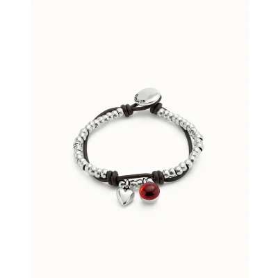 Uno de 50Sterling silver-plated bead bracelet with leather and red murano glass.Ser Fascinante is to possess a natural magnetism. Attract all eyes (like Murano glass). Captivate anyone who spends more than a minute with you. Have a peculiar personality. Play with the good aspects and embrace the bad ones. Be enigmatic, but also dazzling. Have an aura of mystery that leaves everyone wanting more. The time to Ser Fascinante is now.