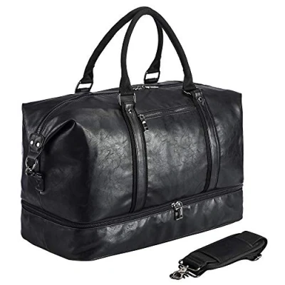Better practicality:The leather travel duffel bag has a zippered pocket on the front, which can conveniently store mobile phones, passports, wallets and other items. There is a luggage bar slot on the back to easily fix the travel bag on the luggage rod, which is more relaxed. The mobile and adjustable shoulder strap has a comfortable cushion that can be carried on the body Oversized duffle bag:Made of high quality waterproof super fiber PU leather.21.2"/10.8"/11.7"(L*W*H). Weight: 1.5KG/ 3.3 pounds. Large oversized capacity: 52L. Larger than normal gym duffel bag, suitable for 3-4 days weekender or business trip. unisex classic style perfect for men and women With shoe pouch: The travel duffel bag with shoe pocket is useful for daily travel, The shoes compartment inside is made of high quality waterproof polyester fabric Cushioning design of shoulder strap:The adjustable shoulder strap satisfies the need of most people and the overnight bag also has cushioning design of soft shoulder strap. When you pack a lot of items in your bag, you'll find it’s more comfortable and relaxing than a bag without cushioning design of shoulder strap Stylish vintage bag:It can be used as a travelling bag, gym duffel bag, sports duffel bag, overnight bag, military duffel bag, carry-on luggage bag for men and women