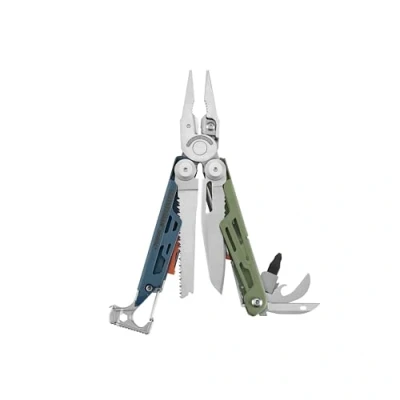 SnowcountryA perfect fit for any adventure, the Signal® combines 19 useful tools into a compact, 4.5 inch size. This multi-tool readies you for the unexpected with its fire-starting ferro rod, 420HC combo blade, and emergency whistle. Tighten gear with the customizable bit driver and anchor your tent stakes with the built-in hammer. Gear up and go further with the Leatherman Signal®. DLC coating on stainless steel and black. Cerakote™ for coyote tan, aqua, crimson, grey, and cobalt colors. Nylon sheath included.