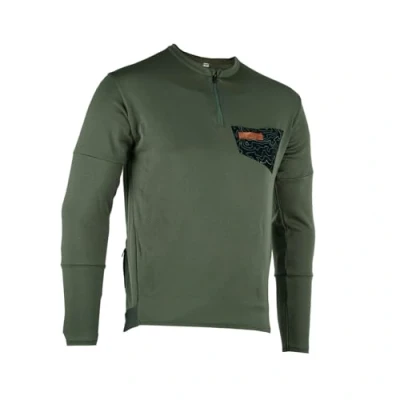 Warm Yarn long sleeve trail jersey with soft touch fabric Ergonomic fit for multiple comfortable riding positions 3 cargo pockets (bottle sized) with additional zippered back pocket Laser cut perforation for breathability. Concealed chest zip for additional ventilation
