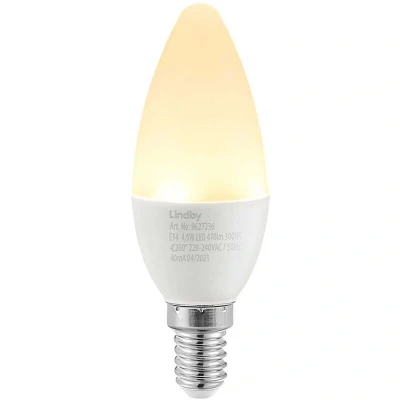LINDBY is a renowned brand known for its commitment to quality and design. Each product is crafted to the highest standards, ensuring durability and long-lasting performance. The LED bulb included is an E14 C35 model, a candle-shaped bulb made of opal plastic that mimics traditional bulbs. It delivers brightness equivalent to a 40W incandescent bulb while consuming only 4.5W of power.