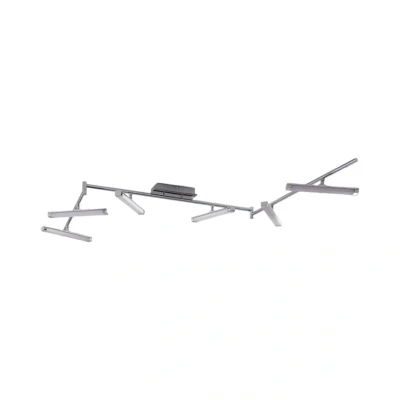 This ceiling lamp is characterized by a purist design, consisting of a three-part frame with a sleek chrome finish. The six lamp heads provide a broad illumination spread that is well suited for basic room lighting. The arrangement of the lamp heads not only maximizes light distribution but also adds visual interest to your ceiling. Each lamp head can be positioned according to your preference, ensuring optimal lighting conditions tailored to your specific requirements.